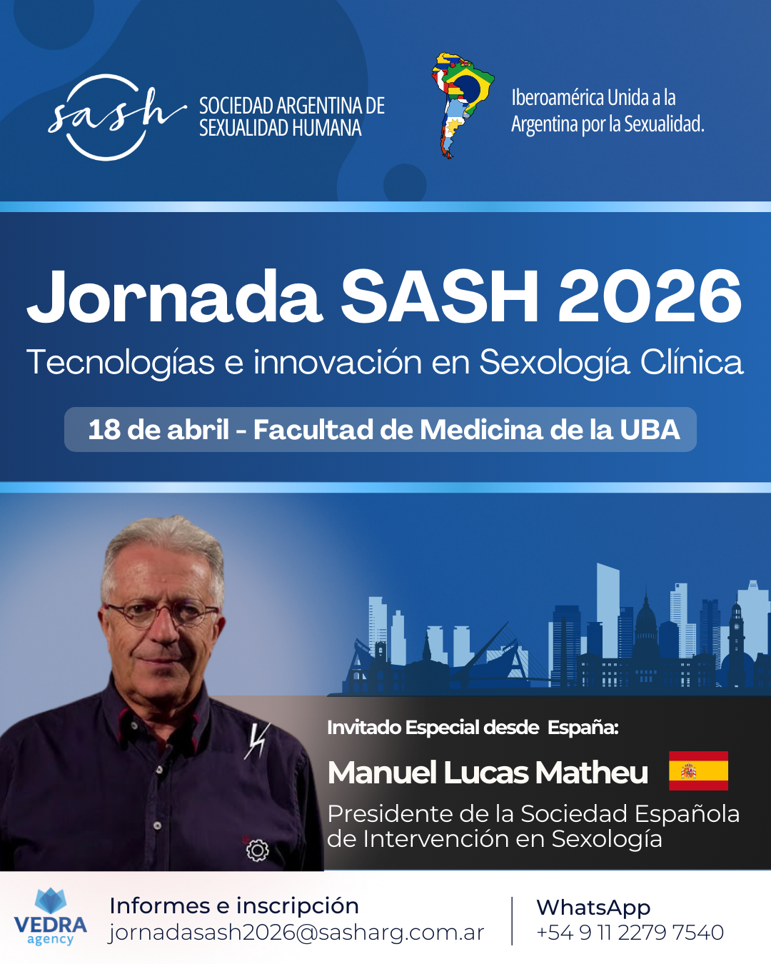 Invitado internacional: contaremos con la participación especial de Manuel Lucas Matheu, presidente de la Sociedad Española de Intervención en Sexología, quien viajará desde España para compartir su mirada y experiencia.