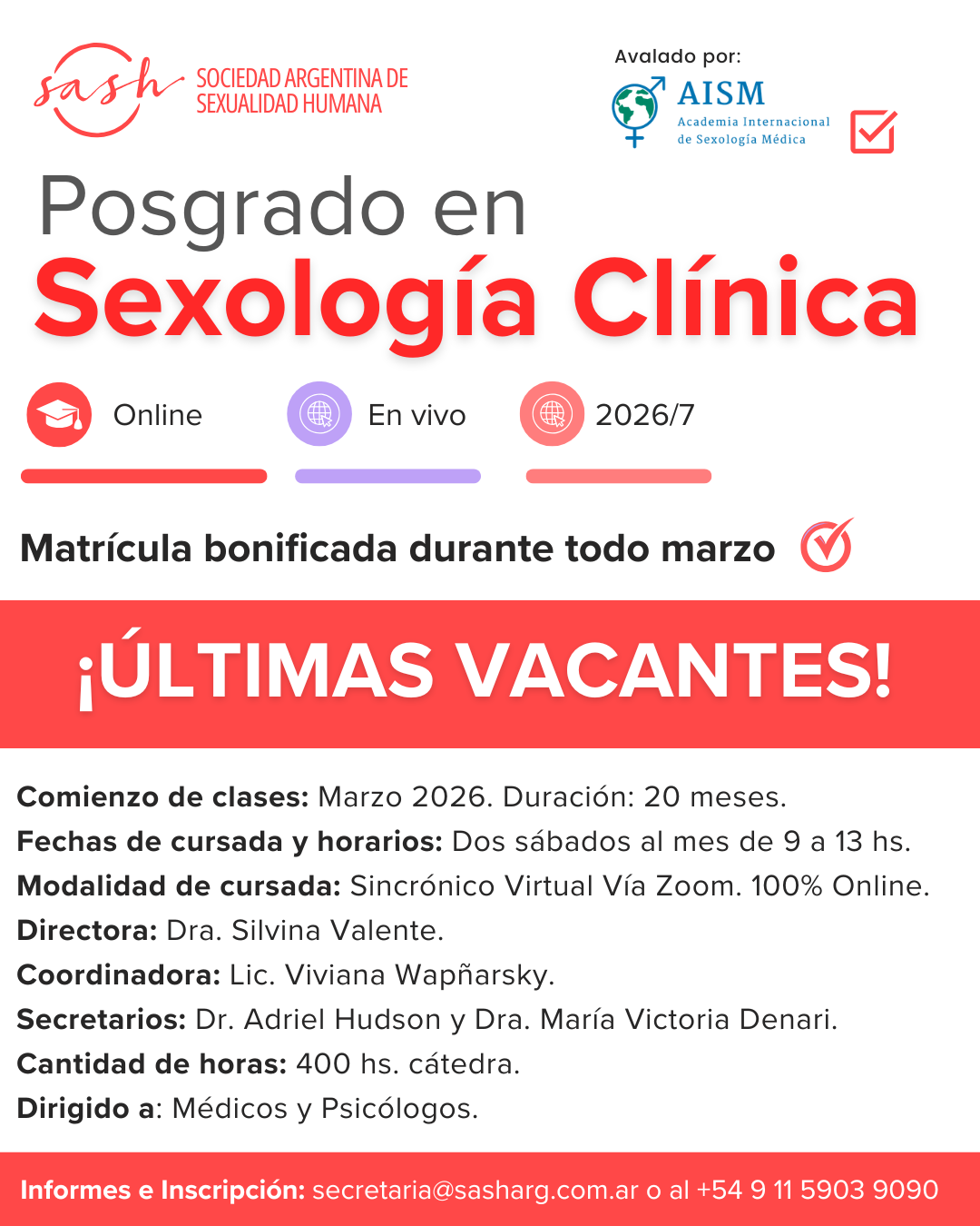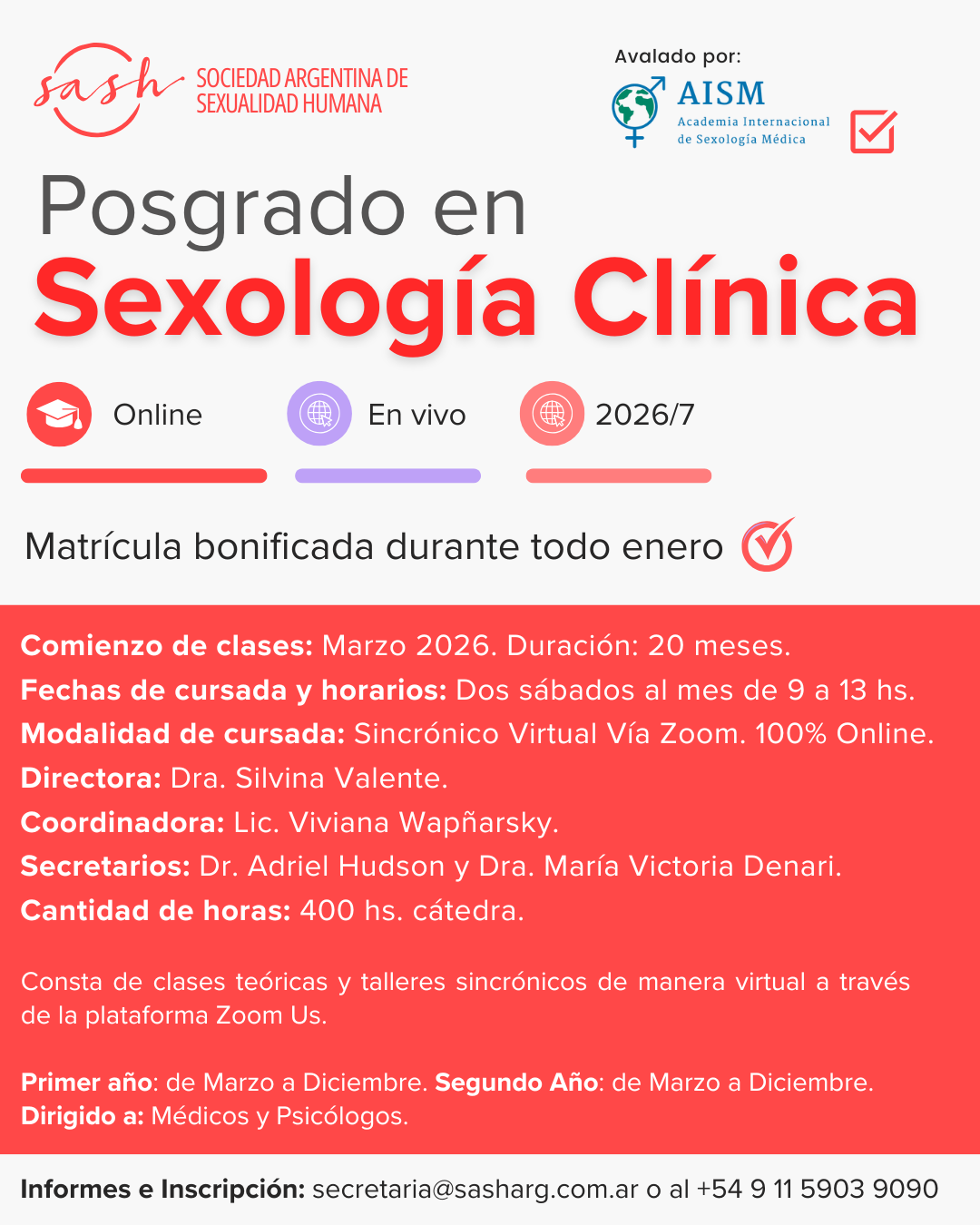 Modalidad de cursada: Sincrónico virtual, 100% online vía Zoom.